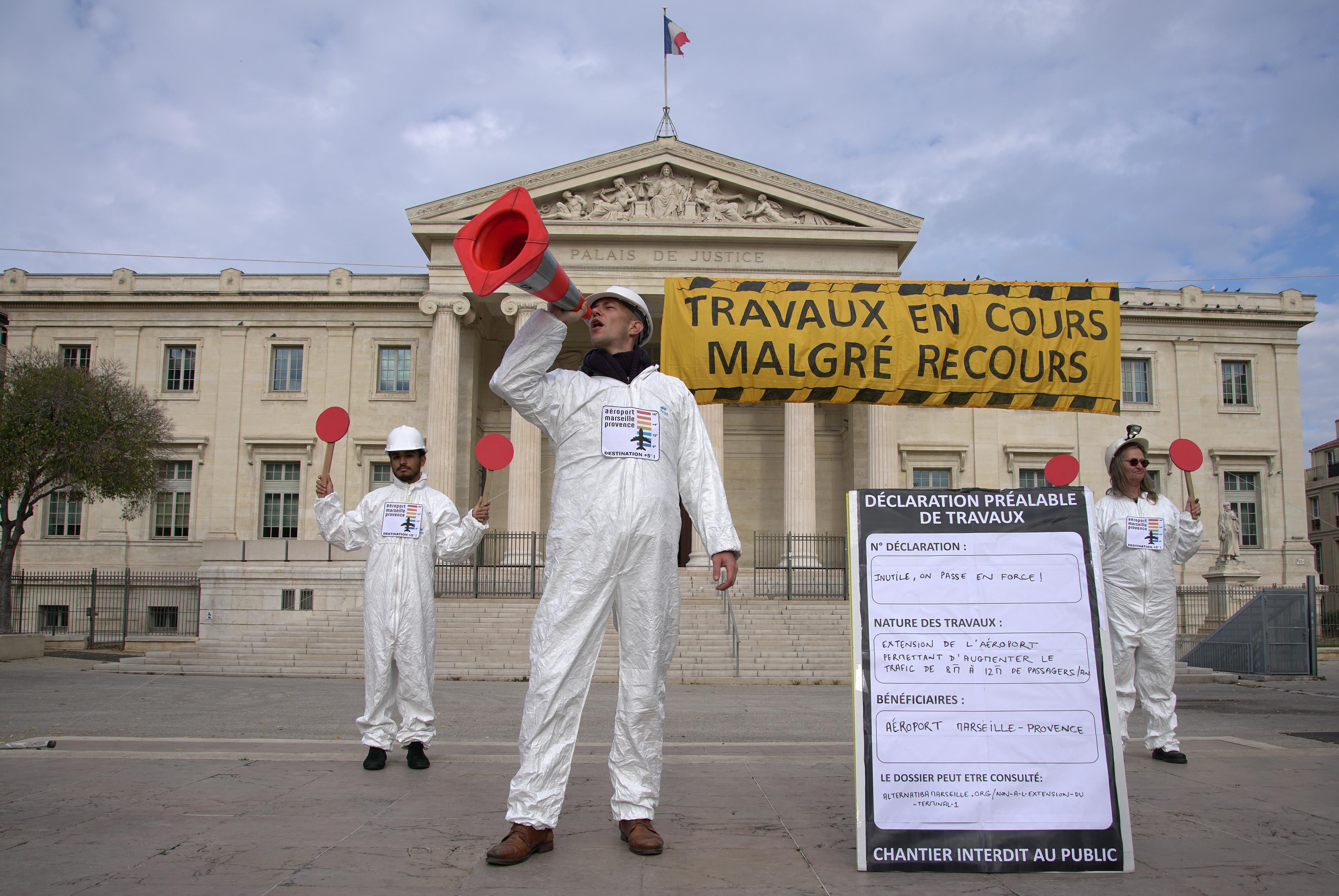 Les associations dénoncent le démarrage en grande pompe des travaux "Cœur d'aérogare", chantier engagé avec l’approbation de l'État, son principal actionnaire, au mépris des objectifs de réductions des émissions gaz à effet de serre, au mépris des habitants des communes voisines, pour lesquelles les nuisances sonores et la pollution vont augmenter. « L’annonce du démarrage des travaux est d’autant plus scandaleuse que l’aéroport ne nous avait toujours pas communiqué son mémoire en réponse attendu pour faire avancer le dossier juridique, mémoire que notre avocat a reçu hier seulement » déclare Florence Joly, porte-parole d’Alternatiba Marseille « il s’agit ici d’une volonté délibérée de faire trainer le processus juridique pour passer en force et nous mettre devant le fait accompli une fois que les bâtiments seront construits. »